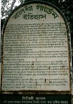 1. ^ Zia Uddin Ahmed (2012). "Baldah Garden". In Sirajul Islam and Ahmed A. Jamal (ed.). Banglapedia: National Encyclopedia of Bangladesh (Second ed.). Asiatic Society of Bangladesh.