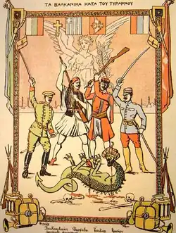 The League of the Balkans[a] was a quadruple alliance formed by a series of bilateral treaties concluded in 1912 between the Eastern Orthodox kingdoms of Greece, Bulgaria, Serbia and Montenegro, and directed against the Ottoman Empire,[1] which still controlled much of Southeastern Europe.