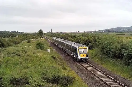 NIR Class 3000 train passing the site of Ballyclare Junction station in 2005