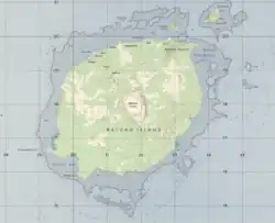 Baluan is formed by a Pleistocene stratovolcano with a large summit crater and several flank vents, some of which might be from the Holocene age. Baluan has erupted basaltic rock rather than rhyolitic rocks like its neighbours. Several small islands consisting of cone remnants are located within 1 kilometre (0.62 mi) of the north coast. Geothermal activity is observed in coastal areas.[1] Volcanic activity is evident from the hot water springs which emerge close to the shore which are mostly covered by the tide. There is a reef which surrounds the island and prevents the sea from damaging the coast.[2]