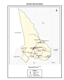 Banda District is one of the twelve districts in Bono Region, Ghana.[2] Originally it was formerly part of the then-larger Tain District on 17 February 2004; until the northern part of the district was split off to create Banda District on 28 June 2012; thus the remaining part has been retained as Tain District. The district assembly is located in the northeast part of Bono Region and has Banda Ahenkro as its capital town.