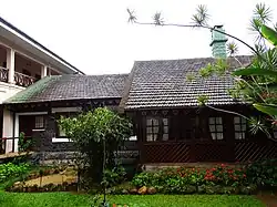 The century-old British-built property is associated with the development of the hill-country railway and is situated within walking distance from the railway station. Bandarawela Hotel's origins date back to the turn of the 19th / 20th century when the railways were being extended by the British from Nanu Oya to the southern highlands as a Railway Hotel.[4] The foundation stone for the building was laid in 1893 for a tea planter's club.[2][5] It was subsequently converted into a rest house and was used as a sanitarium by British soldiers and officers recovering from the Second World War.[6] In 1938 there was a refurbishment and extension of the building to its present capacity. The hotel had a 'European Only' policy until Sri Lankan independence in 1948.[2][7]