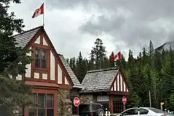 In 1931, the Government of Canada enacted the Unemployment and Farm Relief Act which provided public works projects in the national parks during the Great Depression.[21] In Banff, workers constructed a new bathhouse and pool at Upper Hot Springs, to supplement Cave and Basin.[19] Other projects involved road building in the park, tasks around the Banff townsite and construction of a highway connecting Banff and Jasper.[19] In 1934, the Public Works Construction Act was passed, providing continued funding for the public works projects. New projects included construction of a new registration facility at Banff's east gate and construction of an administrative building in Banff. By 1940, the Icefields Parkway reached the Columbia Icefield area of Banff and connected Banff and Jasper.[22] Most of the infrastructure present in the national park dates from public work projects enacted during the Great Depression.[21]