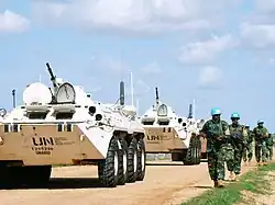Bangladesh Army personnel and armoured personnel carrier in UN peacekeeping mission -