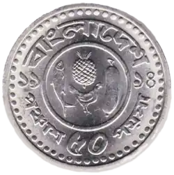 The Bangladeshi decimal fifty-poysha coin (Bengali: পঞ্চাশ পয়সা) was first minted in 1973.[1] It is a small denomination of Bangladeshi monetary unit which is the taka.[2] It equals one half of a taka.