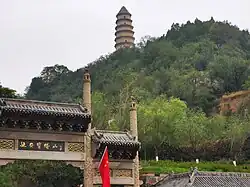 The Yan'an Pagoda Mountain Scenic Area (延安宝塔山景区) is located within the district.[17] The mountain's peak reaches 1,135.5 metres (3,725 ft) in elevation, and features a 44 metres (144 ft) tall pagoda built during the Tang Dynasty.[17]