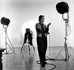 In 1943 at the request of Josef Albers, Barbara Morgan sent 24 photographs for an exhibition at Black Mountain College to accompany a lecture he was presenting on photography. The next year, Morgan joined the faculty of Art Summer Institute for a week during its inaugural year (1944) with Walter Gropius and Josef and Anni Albers, among others.[19][20] During this session, Morgan lectured to the entire campus community on "the role of Light in Photography." She did not teach a darkroom class, but rather used an outdoor workshop and placed emphasis on aesthetics over technique.[21]