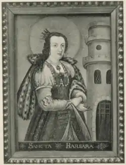 Barbara of Württemberg (4 December 1593 — 18 May 1627) was margravine of the historical German territory of Baden-Durlach. The daughter of Frederick I, Duke of Württemberg and his wife, Sibylla of Anhalt, she was born a Duchess of Württemberg and became margravine after marrying Frederick V, Margrave of Baden-Durlach, in 1616. She is depicted as Saint Barbara in a posthumous miniature portrait.[1][2]