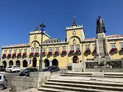 Barcelos (Portuguese pronunciation: [bɐɾˈsɛluʃ] ) is a city and a municipality in Braga District in the Minho Province, in the north of Portugal. The population in 2011 was 120,391,[1] in an area of 378.90 km2.[2] With 60 parishes, it is the municipality with the highest number of parishes in the country. It is one of the growing municipalities in the country, and is well known for its textile and adobe industries, as well as its horseback riding events and "figurado" style of pottery, which are comical figurines with accentuated features of farmers, folk musicians, and nativity scene characters.