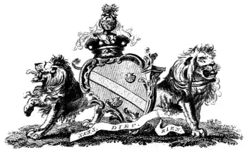![]() ![]() Arms of Petre: Gules, a bend or between two escallops argent[1] | |