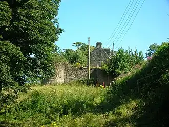 The ancient mansion or castle[3] of Kersland stood on Easter (now 'East') Kersland Farm. The remains of the 'L-Plan' tower has been built into the farmhouse. The barmkin wall survives and has a surviving strong defensive corner tower.[4] Paterson records that the house was almost entirely pulled down by the feuar, Robert Ker.[5] The remaining two barrel vaulted chambers, later used as a dairy and stable, with walls 8 ft thick, until recently formed part of the offices attached to East Kersland.