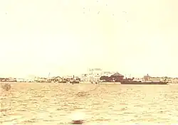 At the end of the 19th century, the station and its warehouses underwent expansion works, due to fears that the Cacilhas branch line, which was being planned at the time, would lead to a reduction in rail traffic.[22] Still, at the beginning of the 20th century, the Barreiro station had several structural problems, such as the river docks having no protection and suffering frequent flooding on rainy days.[22] This meant goods had to be loaded and unloaded on a small pier, with only two steam cranes, and stored in a warehouse that was very small.[22] In addition, this infrastructure also served for the unloading of coal, rails, and other materials, to the general warehouses.[22] To make the most of the available space on the ships, refills and small-speed goods were transshipped in the same place, generating several misplacements and other irregularities in the service.[22] The river wharves and railway lines lacked proper identification, which further complicated operations.[22] These deficiencies made the management of the terminal more expensive, which was reflected in the prices charged to customers.[22] Due to the limited space available on the site, only small expansions, such as the installation of new cranes, could be made, which failed to solve the station's problems.[22] On the other hand, navigation near the station was difficult, as the water being shallow in certain places.[36]