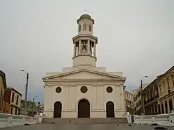 Located in southern Valparaíso, the historic area is protected by the municipality and UNESCO.[1] Two buildings within the area are the Mercado Puerto (English: Port Market), built in 1924, and Iglesia de la Matriz (English: Church of the Matrix).[2] Mercado Puerto is located near the site where Juan de Saavedra landed in 1543, at what is now Plaza Echaurren.[3] Between 2002, when the building was restored, and the 2010 Chile earthquake, the mercado was the site of several seafood restaurants.[4][5] Near it and Plaza Wheelwright is the Iglesia de la Matriz,[4] an adobe church, known for its octagonal steeple, that was built in 1837. It is the site of the first church built for the city in 1559.[3][5] The king and queen of Spain donated a 17th-century Spanish carving of Christ in Agony to the church.[5]