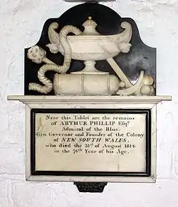 - ^ St Nicholas Church, Bathampton Archived 14 February 2017 at the Wayback Machine, Burial place of Arthur Phillip
