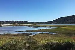 Batiquitos Lagoon is a coastal wetland and estuary located between southern Carlsbad and Encinitas, in the North County region of San Diego County, California. The lagoon itself consists of 610 acres with a drainage basin of about 55,000 acres. Its primary freshwater tributaries being San Marcos Creek from the east and Encinitas Creek which flows north along Green Valley, entering the lagoon under El Camino Real and La Costa Avenue, respectively.[1] It is one of the few remaining tidal wetlands on the southern California coast.[2]