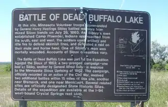 The Battle of Dead Buffalo Lake was a skirmish in July 1863 in Dakota Territory between United States army forces and Santee, Yankton, Yanktonai and Teton Sioux. The Sioux attempted to capture the pack train of the army and retired from the field when they were unsuccessful.