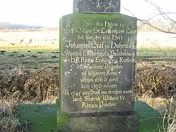 Philipp von Utenhoven and count Johannes von Hohenlohe were buried in Franziskaner-Klosterkirche church in Berlin. Frederick I, close friend of Johannes, had ordered inhabitants of Kremmer to build a woden cross in the place of his death. It was restored in 1660, and in 1845, from the initiative of Frederick William IV of Prussia, the woden cross has been replaced with a new metal one, which stands near the road to this day.[6]