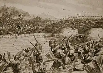 The Battle of Maldon took place on 10 or 11 August 991 AD[1] near Maldon beside the River Blackwater in Essex, England, during the reign of Æthelred the Unready. Earl Byrhtnoth and his thegns led the English against a Viking invasion. The battle ended in an Anglo-Saxon defeat. After the battle Archbishop Sigeric of Canterbury and the aldermen of the south-western provinces advised King Æthelred to buy off the Vikings rather than continue the armed struggle. The result was a payment of Danegeld of 10,000 Roman pounds (3,300 kg) of silver (approx £1.8M at 2022 prices).