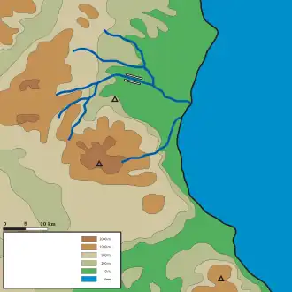 The details of the Macedonian army at the second encounter at Pydna are more scarce. It is known that Andriscus started his campaign with Thracian troops.[7] These were usually light troops; the troops that composed the main body of his army are unknown; it is not known if they even fought in the traditional Macedonian phalanx or a looser formation. He also had a sizeable number of cavalry. The total strength of Andriscus' army is unknown, but it was significant enough for him to be confident about detaching a portion of it just before the battle.[8][9]