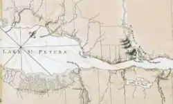 The American crossing had been seen by a local militia captain, who rushed to the British camp at Trois-Rivières and reported to General Fraser.[17] Thompson left 250 men to guard the landing and headed the rest towards Trois-Rivières. Unfamiliar with the local terrain, he convinced Antoine Gautier, a local farmer, to guide the men to Trois-Rivières. Gautier proceeded, apparently intentionally, to lead the American army into a swampy morass from which it took them hours to extricate themselves.[18] In the meantime, the British, having been alerted to the American presence, proceeded to land troops from the fleet and formed battle lines on the road outside the village.[19] Ships were also sent up to Pointe du Lac, where they drove the American guards there to flee across the river with most of the boats.[20]