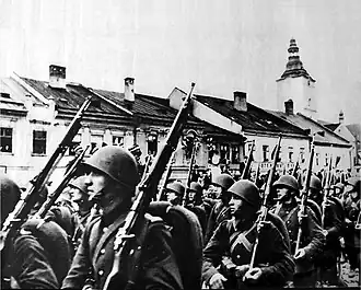 A couple of days later, Soviet troops defeated the Poles at Wytyczno; This was all the end of the campaign, after the German troops took part in the last major battle of the Polish campaign.[1]