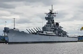 The Battleship New Jersey Museum and Memorial is located at 62 Battleship Place, Camden, New Jersey. This museum ship preserves and displays USS New Jersey, the most decorated battleship to have served in the U.S. Navy and one of the largest ever built.[2]