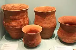 When used alone “beaker” usually refers to the typical form of pottery cups called inverted-bell beakers associated with the European Bell Beaker culture of the late Neolithic and early Bronze Age.