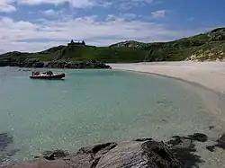 At Tràigh an Teampaill, there is the ruined chapel of St Michael and an adjacent cemetery. The island is also the site of the former chapel of St Dondans of which no trace remains but is generally believed to be sited in the very north-west near Mol Mòr. There is a folk story that a Norse king, Swain, took Gealchos, the daughter of a young priest, from Tràigh an Teampaill to Norway, but her heart broke mourning for Little Bernera, so he brought her back.[8]