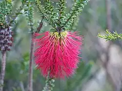 Beaufortia decussata, commonly known as gravel bottlebrush,[2] is a species of flowering plant in the myrtle family, Myrtaceae and is endemic to the southwest of Western Australia. It has long stems branching only near the upper ends, and scarlet to orange-red flowers in a bottlebrush shape beneath the branches.