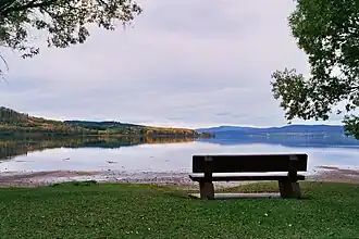 A view of Fraser Lake from the beach at Beaumont Provincial Park