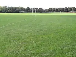 The south-eastern part is a large grassed area with football pitches, a children's playground and a small pond. North-west is a hilly area managed for nature conservation with a wildflower meadow and woods.[5]