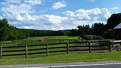 A Lutheran church, located off Beach Road, was "probably the first house of worship" in the town.[6] The church is "on the records from 1749" and "served the German settlers who came from the Palatine immigration."[6] A Quaker meeting house was built in 1771 in Gardner Hollow, and was named the "Apoquague Preparative Meeting."[6] St. Denis Church, a Catholic church located just beyond the East Fishkill line, also attracted worshipers from Beekman.[6]
