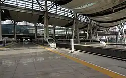 Beijingnan Zhan (Beijing South railway station)[11] is a subway station on Line 4 and Line 14 of the Beijing Subway in China.[12] It is located under the building of Beijing South railway station. The station opened on 28 September 2009, when the whole Line 4 was put in operation.[13] The station on average has 135,000 entrances and exits per day.[14]