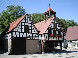 The town hall is a baroque timber building. After its destruction in 1693 it was rebuilt from 1703 to 1710. Even other timber buildings show the reconstruction of the town, e. g. the neighbouring Alte Schmiede (old smithy). Also a new Alte Kelter (old wine-press) was built in 1698 instead of an older one.