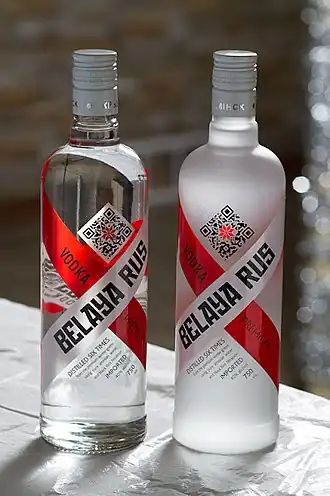 Belaya Rus (Belarusian: Белая Русь) is a brand of vodka distilled in Belarus from a blend of premium hard winter wheat (25%) and rye (75%) using pure artesian water drawn from wells 300 m (1,000 ft) deep. The alcohol content of this spirit is 40%, (eighty proof), priced similarly to Smirnoff and Svedka. "Belaya Rus" literally translates as "White Ruthenia".