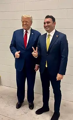 In October 2024, Këlliçi met with President Donald Trump[32] during a campaign event in Saginaw, Michigan. The meeting, and a photograph Këlliçi posted from it, generated considerable controversy in Albania. Këlliçi stated the meeting was at no cost, though this was publicly questioned by political activists and led to him being questioned by Albania's Special Anti-Corruption Structure (SPAK) regarding the financing of the trip.[33] As of now, there is no actual proof that Belind Këlliçi used money to settle this meeting. The meeting was criticized by the ruling Socialist Party and government-controlled media. Këlliçi remains the only known member of the Albanian parliamentary opposition to have met with Donald Trump.