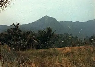![]() The compound Belirang-Beriti volcano rises above Mubai village. | |