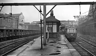 The North British company took over the CGUR in 1896 jointly with the Glasgow and South Western Railway, operating all services on the Springburn line thereafter. Local traffic on the remainder of the line from St Enoch declined in the face of strong competition from the local tram network and by 1902, the one intermediate station at Gallowgate had been closed.[1] Services continued to run from St Enoch to Bridgeton Central until 1913, but thereafter the line was only used by freight & parcels traffic, periodic excursions & other special trains.