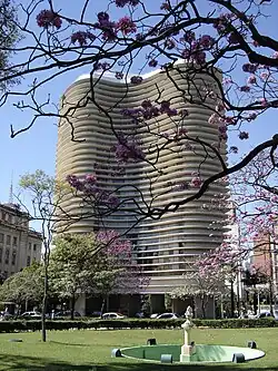 In the 1940s a young Oscar Niemeyer designed the Pampulha Neighbourhood to great acclaim, a commission he got thanks to then-mayor and soon-to-be-president Juscelino Kubitschek. These two men are largely responsible for the wide avenues, large lakes, parks, and jutting skylines that characterize the city today.[14] A 1949 American government film favorably reviewed the planning and building of the city.[15]