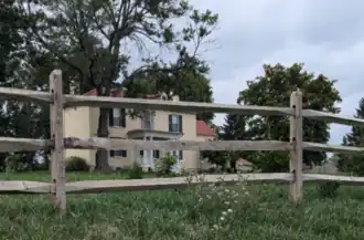 Belvedere, also known as Belvidere, was built near Charles Town, West Virginia by Magnus Tate II in 1807. The Federal style mansion is situated at the end of a tree-lined driveway and commands a sweeping view of the Blue Ridge Mountains. The house grew from the original "kitchen house" section to a formal three-bay brick main house built in 1824 by Magnus's son WIlliam, which were separate until they were connected in 1939.[2]
