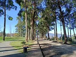 The park, which is almost entirely bounded by Dinamarca street along its entire perimeter and Francia street to the east, covers an area of 60,000 m2 and comprises a central walkway that begins in Francia street and continues from Italia street.[13] Scattered throughout the park and around the central walkway are around a hundred exotic eucalyptus trees with thick trunks at the base and broad leafy tops.[14][15] These eucalyptus trees, arranged on both sides of the central avenue corresponding to the original design of the garden, form a double alignment, and include species of manna gum, rose gum, blue gum and bangalay.[9]