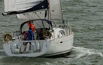 For sailing downwind the design may be equipped with a symmetrical cruising spinnaker.[10]