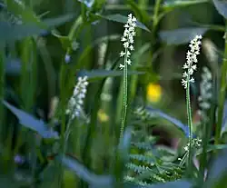 Bensoniella is a monotypic genus of plants in the saxifrage family containing the single species Bensoniella oregona (also, B. oregana), which is known by the common name Oregon bensoniella, or simply bensoniella. This plant is endemic to the Klamath Mountains of northern California and southern Oregon. This is a plant of the wet forest understory and meadows above 1000 meters in elevation. It is a perennial herb which grows from a rhizome and bears rounded to heart-shaped lobed leaves with woolly petioles and tall, thin racemes of flowers. Each flower is white with bright yellow-pink anthers. The plant produces capsules of abundant seeds but also reproduces vegetatively. When it does reproduce sexually, it often self-pollinates. Bensoniella is not endangered but it is a species of some concern for several reasons, including lack of genetic diversity in part due to its habit of self-pollination and asexual reproduction, its relatively narrow tolerance of habitats, its small range of distribution, habitat destruction due to logging, grazing, and road-building, and erosion. The plant was first collected in 1916 by John Hunter Thompson.[2][3]