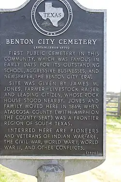- ^ (1972) Texas historical marker for Benton City Institute