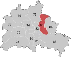 Berlin-Lichtenberg is an electoral constituency (German: Wahlkreis) represented in the Bundestag. It elects one member via first-past-the-post voting. Under the current constituency numbering system, it is designated as constituency 85. It is located in eastern Berlin, comprising the Lichtenberg borough.[1]