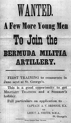 An 1895 recruiting advert for the Bermuda Militia Artillery, printed in The Royal Gazette.