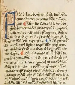 Bernard's most important writings are his three reprobationes, also called impugnationes or improbationes.[5] These were "hostile reviews" or "impugnments" responding to some of the quodlibetal answers of Godfrey of Fontaines, James of Viterbo and Henry of Ghent.[8] They were composed in that order. The reprobatio to Godfrey was written between 1298 and 1304 and that to Henry was finished by 1315.[6] The reprobationes were widely read, being cited by John Capreolus, Peter of Palude, Henry of Herford, James of Metz, Hervaeus Natalis, Durand of Saint-Pourçain, John Baconthorpe, Michael of Massa and Giovanni Pico della Mirandola. Two full and four fragmentary manuscript copies of the reprobatio to Godfrey are known; five copies of the reprobatio to James; and nine of that of Henry.[9]