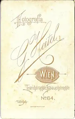 Bernhard Wachtl, like the Vienna-based lithographers K. Krziwanek, Trapp & Münch, Turkel & Steiner, Ipop & Turkel, and Eisenschiml, designed and printed the logos of photographic studios at the verso of the cartons supporting 19th century photographic prints. As a lithographer and printer of this specific product, Wachtl formed contracts throughout the Balkans and the East, from Athens to Batoum, Trebizond, Philippople and from Adrianople to Constantinople (Istanbul), Smyrna and Cairo. In Greece, especially, he handled thirty one photographic studios, such as the Rhomaides Brothers, George Moraites, Anastasios Gaziades, the Kanta Sisters, Nikolaos Zepji and Carl Merlin.[1]