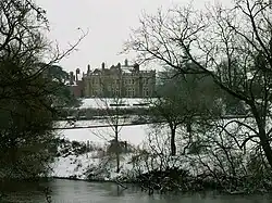There was once a fine pair of fine wrought-iron gates by Robert Davies of Wrexham in the park to the south-east of the house, which are now at Newnham Paddox in Warwickshire.[1]