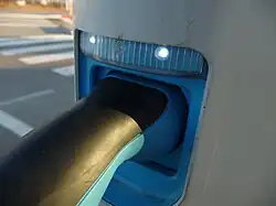 Better Place encouraged governments to mandate the use of international standards and open access to recharge across charging networks to facilitate competing networks.[43] Standardization efforts such as SAE J1772, however, had not yet yielded global consensus as of August 2009. Better Place displayed Charge Spot charging stations that used a connector with the same pin layout as SAE J1772-2009 but housed in a non-standard, triangular plug.[44] They also displayed a wall mounted charging station using IEC 62196 Type 2 receptacle.[45][46] Battery pack switching outside of Better Place's network was not to be allowed. Better Place said it had pre-sold enough contracts to make its first deployed network in Israel profitable at launch.[47]